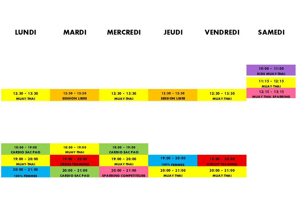 Du lundi au samedi, prenez rendez-vous pour perfectionner votre boxe, vous remettre en forme ou évacuer le stress de vos journées.